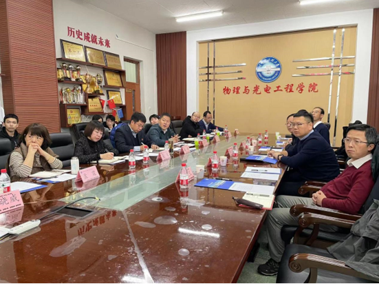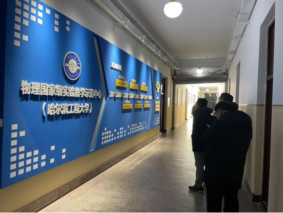 Then, the research team hurried to Harbin Engineering University to have a centralized exchange with the School of Physics and Optoelectronic Engineering and the School of Mathematical Sciences. Liu Zhihai, the president of the School of Physics and Optoelectronic Engineering, Gao Feng, the secretary of the Party Committee, and all members of the team, Sun Rongping, the secretary of the Party Committee of the School of Mathematical Sciences, and Zhang Xiaowei, the vice president, attended the meeting. The focus of this exchange is on subject co construction, education and teaching reform, scientific research, international exchange and cooperation, and laboratory construction. After the meeting, we also visited the National Experimental Teaching Demonstration Center for Physics, providing new ideas and perspectives for the construction of the Optoelectronic Information Science and Engineering and Applied Mathematics majors in our college, as well as the application for the Municipal Demonstration Experimental Center for University Physics.