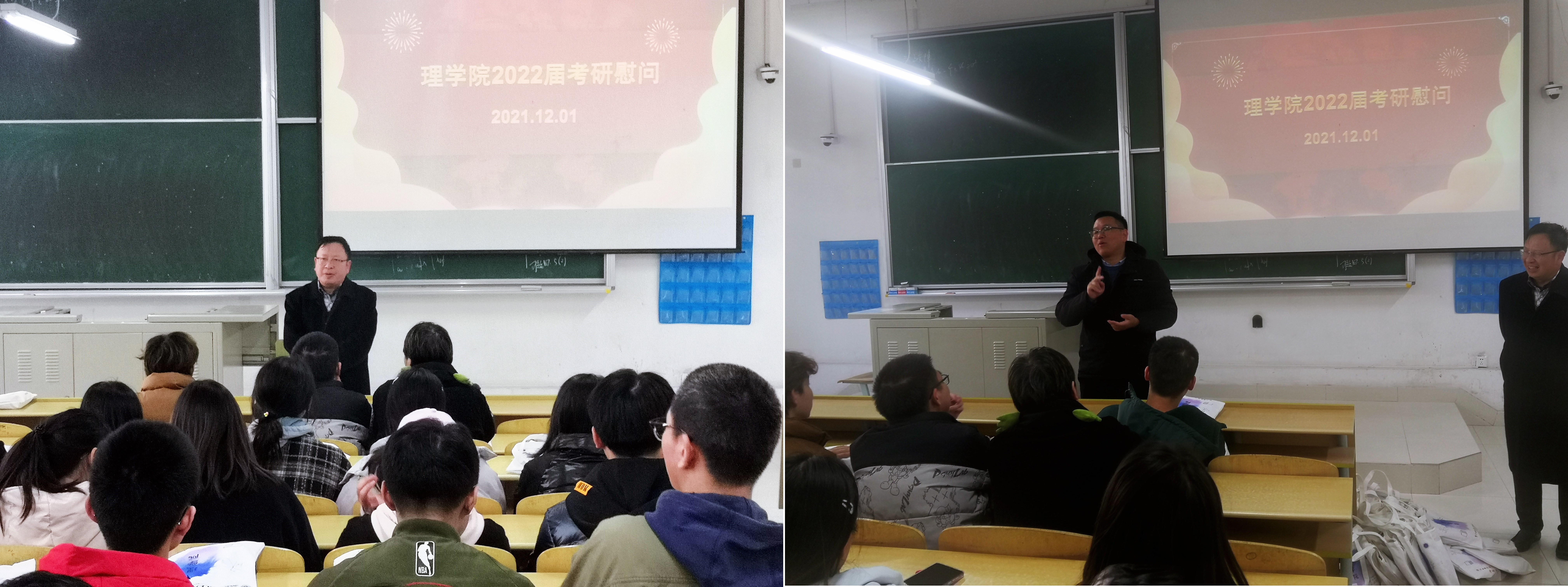 With the coming of the national postgraduate entrance examination in 2022, in order to inspire the confidence of the postgraduate entrance examination students, relieve their psychological pressure and actively deal with the postgraduate entrance examination, on the afternoon of December 1, Li Yigui, President of the University of science, Chen Lei, Secretary of the Party committee, Jiang Yanyan, deputy secretary and vice president of the University of science, and Xi Tong, counselor of the graduation class, went to the classroom to express condolences to the 2022 postgraduate entrance examination students.
