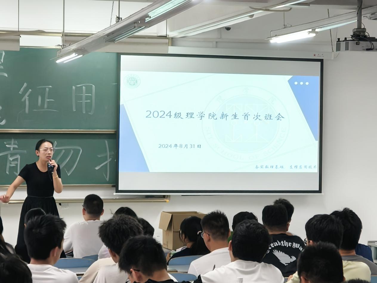 辅导员是新生入学报道的主要对接人,也是未来学习生活中的主要陪伴者。为促进辅导员与新生之间的了解,引导新生以积极的心态科学规划新学年学习生活,同时为进一步加强班级建设,增强班级凝聚力,31日下午,理学院召开了2024级新生首场主题班会,辅导员奚桐老师主持会议。
