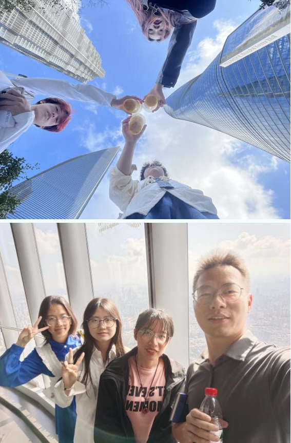 在用过午饭后,师生们一行来到了上海最高处-上海中心大厦,在119层俯瞰上海,曾经的高楼大厦都匍匐在脚下,滋养着上海人民的黄浦江源远流长,讲述着历经千年的文化历史,极速上升的电梯和独特设计的阻尼器,展示着科技的硬核力量。上海中心的“三件套”也吸引着同学们纷纷打卡拍照,在繁华的大都市中绽放青春风采。