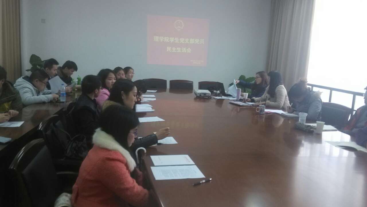 会上,牛老师先是对这次民主生活会的形式和要求达到的目的作了讲话,随后由老师到学生依次对自己过去一年内工作、学习、生活各方面进行汇报,并阐述自己存在的缺点和不足,确定未来努力方向和工作重点,力争将学院发展的更好。接着,各位党员及群众根据大家的发言进行党员互评,同时就党支部的发展提出自己的意见,以便更好地开展党员民主生活会及党组织生活会。会议最后由沙老师进行总结讲话,他充分肯定了理学院学生党支部对这次民主生活会的高度重视和充分准备,对党支部一年的工作成绩和突出表现表示赞赏,希望全支部党员再接再厉,继续发扬。同时对理学院学生党支部提出了新的要求,希望加强学习和管理,加强自身素质的培养。并对未来的民主生活会的开展方式提出建议。
