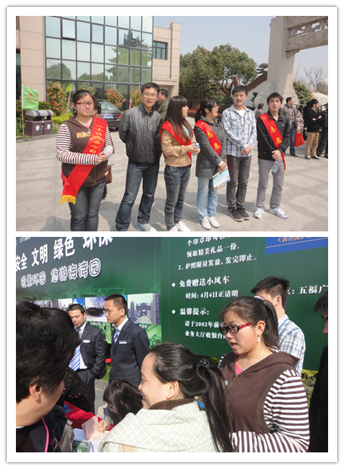 正清明节,比起前两天,来寝园扫墓的人更加多。志愿者们7点半准时从学校出发。到达寝园后,大家被分成了12组,其中,10组分散在园区的各个景点,为到每一个景点的人盖章;剩下的两组同学安排在大门两侧,为进园的扫墓者提供园区的地图和必要的帮助。因为寝园清明节有“送风车”、“办护照领礼品”等活动,想要领取奖品的人很多,场面十分混乱,志愿者们在寝园工作人员的带领下努力的维持现场秩序,以保证道路的畅通。