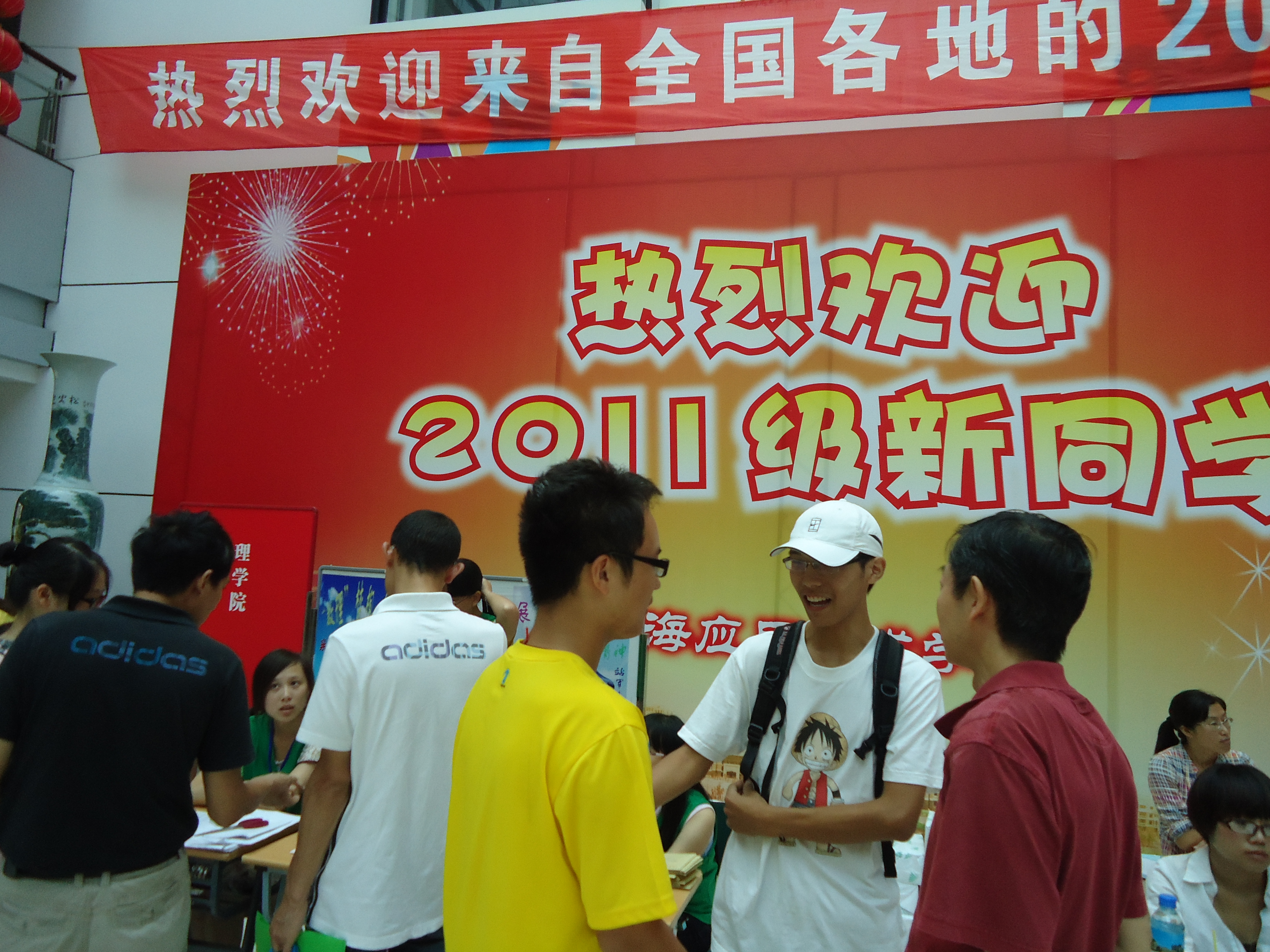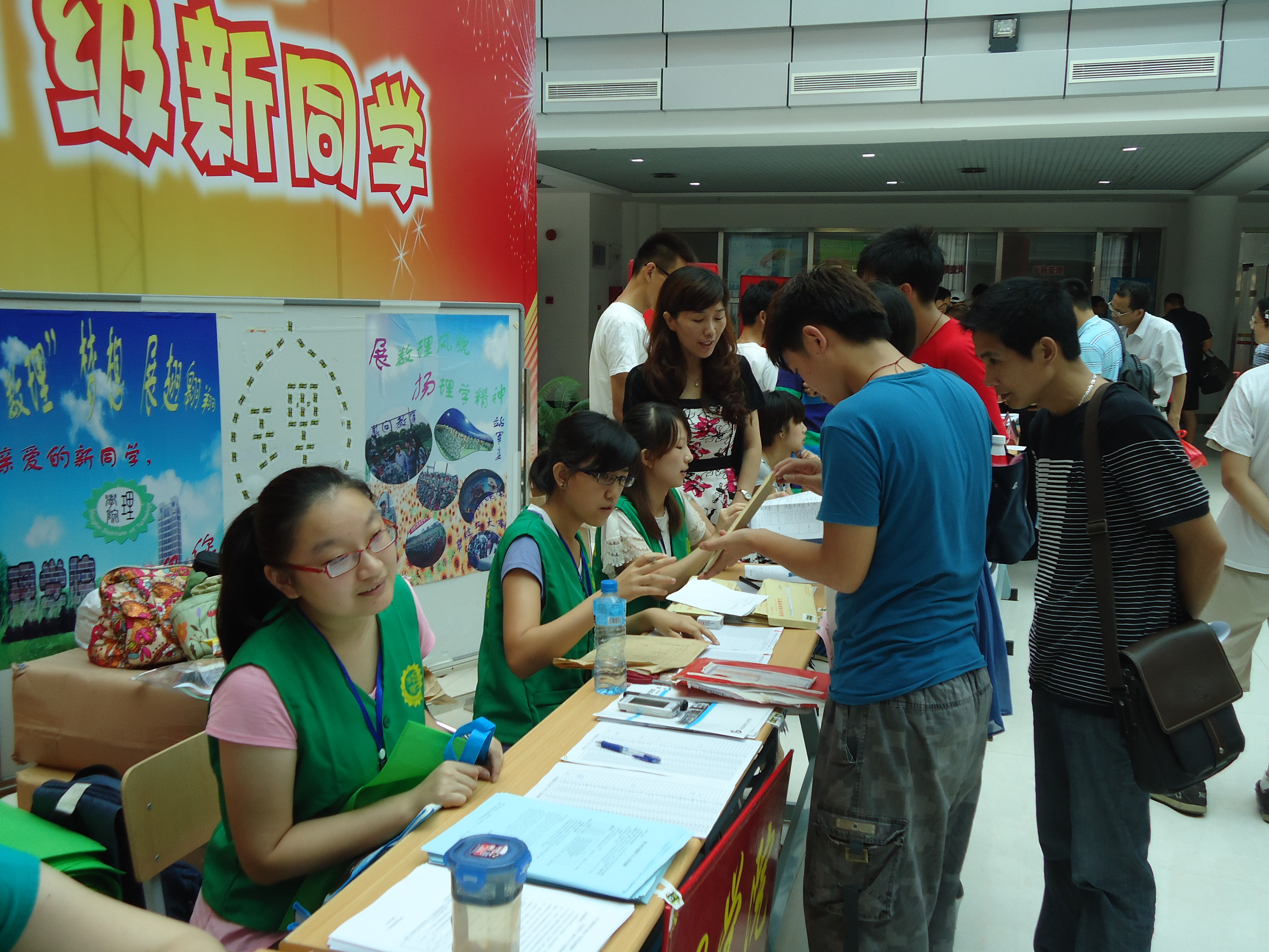 平凡的两天对理学院有着非凡的意义,它蕴含了太多的第一次:第一次开设了两个专业,分别是数学与应用数学、信息显示与光电技术;第一次新生超过七十余人,共81位来自五湖四海的朋友;第一次理学院完整了,四世同堂;第一次迎新志愿者横跨四届成员,由于本次迎新时间有些特殊,老生们都要上课,为了尽量不让学生们翘课,当天下午2个多小时里,刚报到的11级新生也体验了一把志愿者,同时也让他们面对面的认识自己的新朋友、新舍友、新同学。另外,08级的学长更是挑起了整个迎新的大梁,体现了最高一年级的担当与品质,他们也是最特殊的一届,从08年迎自己开始到毕业为止。理学院直属党支部书记王竑、院长许庆祥也来到报到现场,亲切看望慰问已报到的新生和迎新的工作人员。