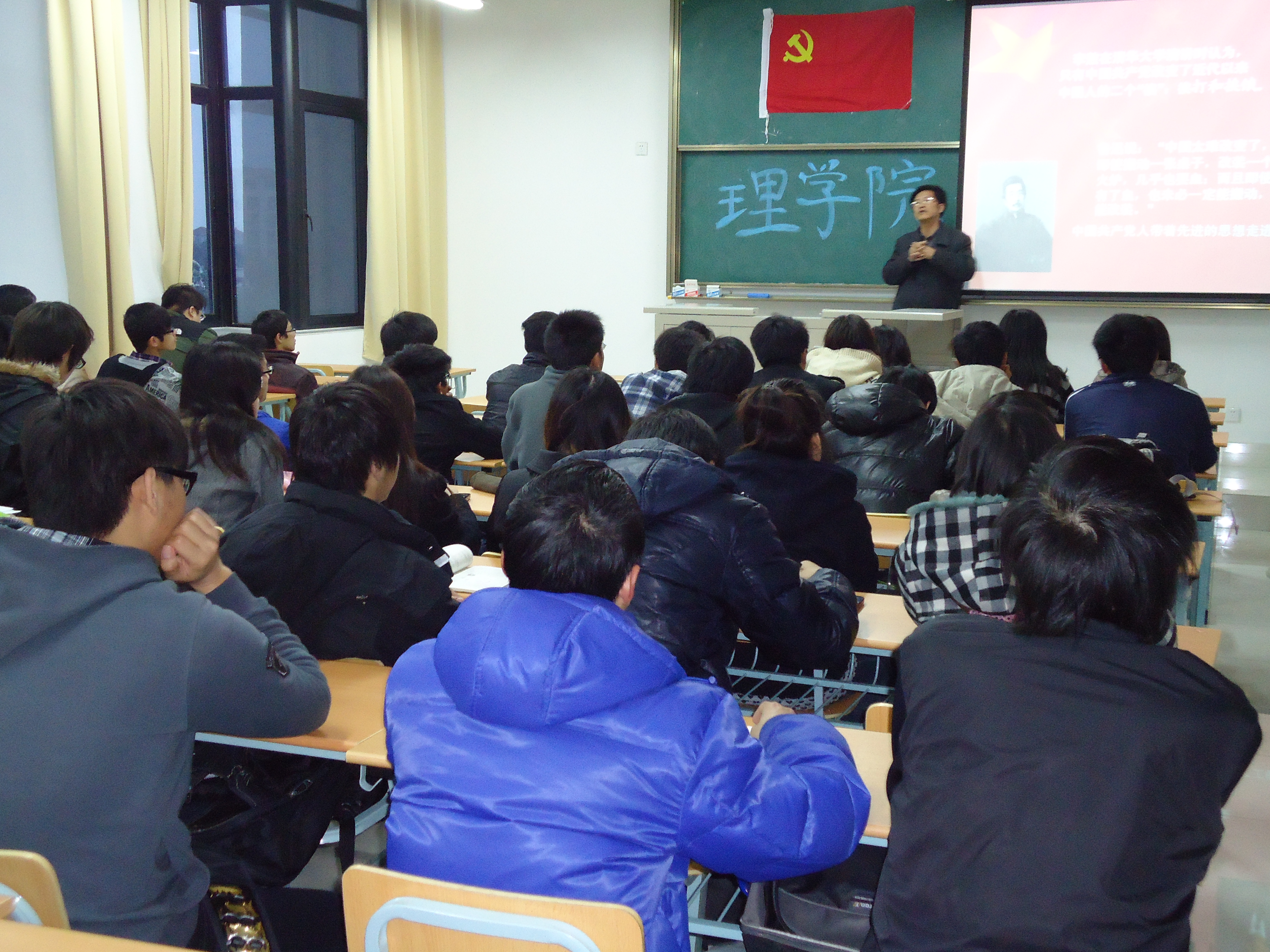 3月29日晚上,在一教C202教室,理学院组织开展了建党90周年“成长在党旗下”系列活动之“红色革命历史故事会”,由理学院周家华教师主讲。