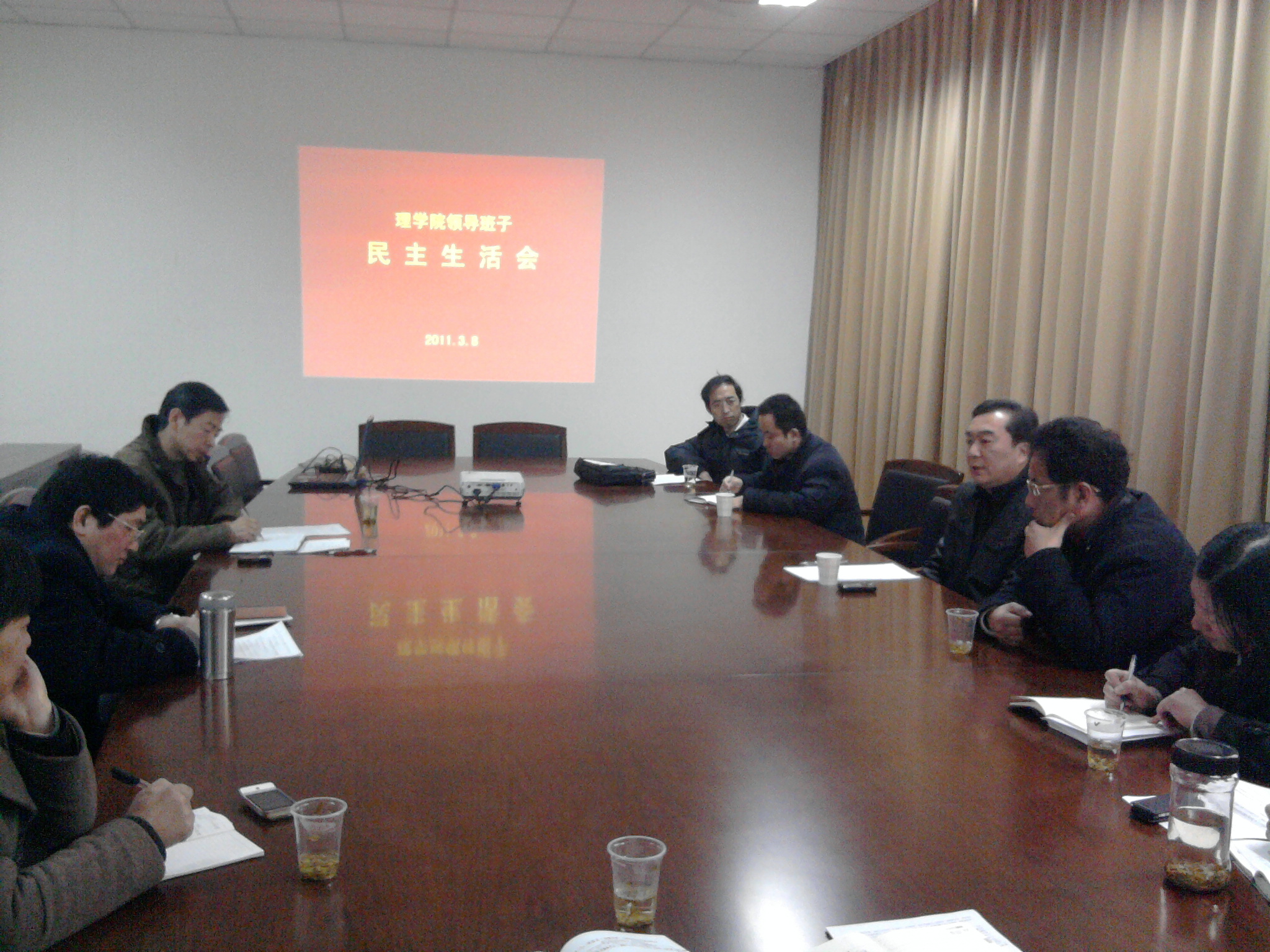 3月8日,校领导祝永康在组织部人员的陪同下,在理学院召开了民主生活会议。理学院党政班子全体成员、部分教师代表出席了此次会议。会议由理学院直属党支部书记主持。