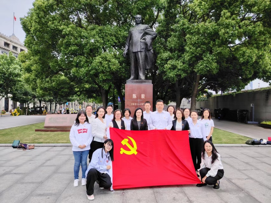 活动最后,大家来到外滩陈毅广场,瞻仰新中国上海市首任市长陈毅的伟岸雕塑。塑像再现了陈毅同志视察工作时的典型姿态,显示他一路风尘,勤勤恳恳的公仆形象,又有和蔼可亲,虚怀若谷的儒将风度。