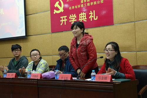 2016年4月12日晚18:00,由我校理学院和化学与环境工程学院联合主办的“党课开学典礼”在图书馆B102报告厅顺利召开。出席此次大会的老师有化工学院特邀组织员许锡泰老师,理学院副书记、副院长牛亏环老师,理学院学生第一党支部书记、辅导员马金娥老师,化工学院兼职组织员、辅导员李阳老师和理学院兼职组织员、辅导员马皓老师。开学典礼由马金娥老师主持,两院共100名入党积极分子参加了此次培训。