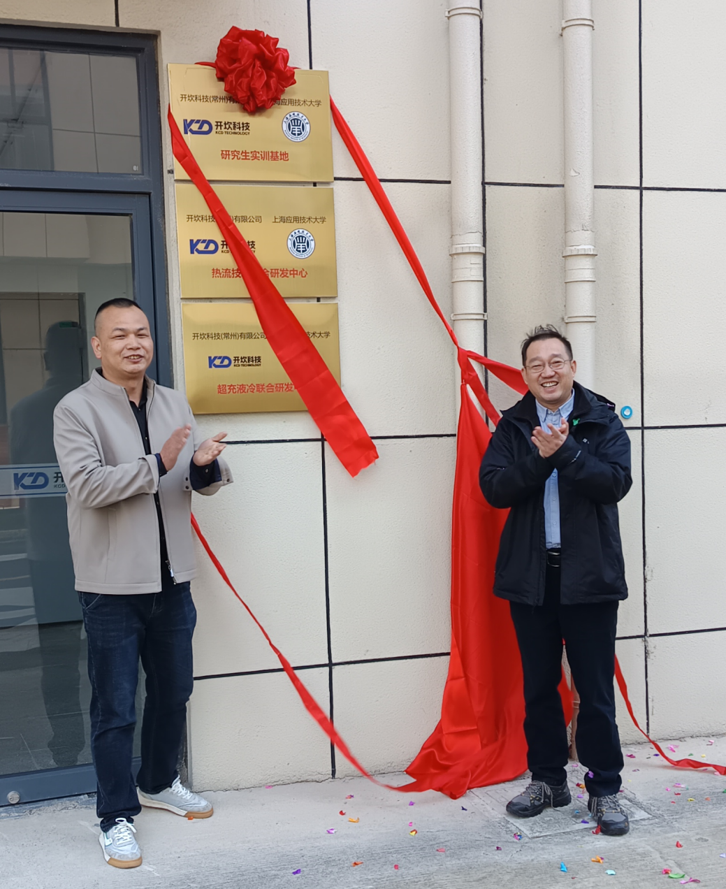 开坎科技的郑浩技术总监和王军副院长就产学研合作、人才培养和就业等方面开展深入交流并签署校企合作协议,和“研究生实训基地”、“热流技术联合研发中心”和“超充液冷联合研发中心”的揭牌仪式。双方将以此次签约为契机,进一步精准对接需求,深化校企双方的合作。