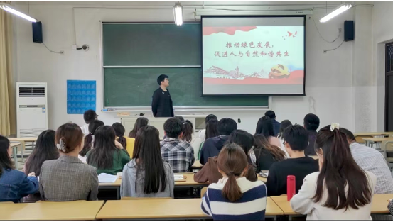 张慧斌同志汇报的主题为党的二十大报告第十章节《推动绿色发展,促进人与自然和谐共生》。他紧扣二十大报告内容,从加快发展绿色转型,深入推进环境污染防治,提升生态系统多样性、持续性、稳定性,积极稳妥推进碳达峰碳中和四个板块作详细解释。通过理论联系实际,例举典型案例的方式描绘了绿水青山就是金山银山的理念。