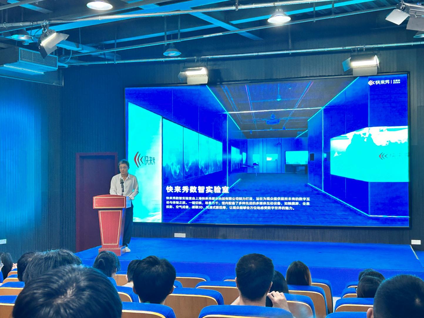 活动中,快来秀公司技术经理首先作《科技演绎视觉奇迹》专题报告,系统介绍了公司的发展历程、核心业务,以及在数字展厅、全息投影、互动沙盘等领域的代表性成果,展示了公司如何将前沿视觉技术转化为市场解决方案。