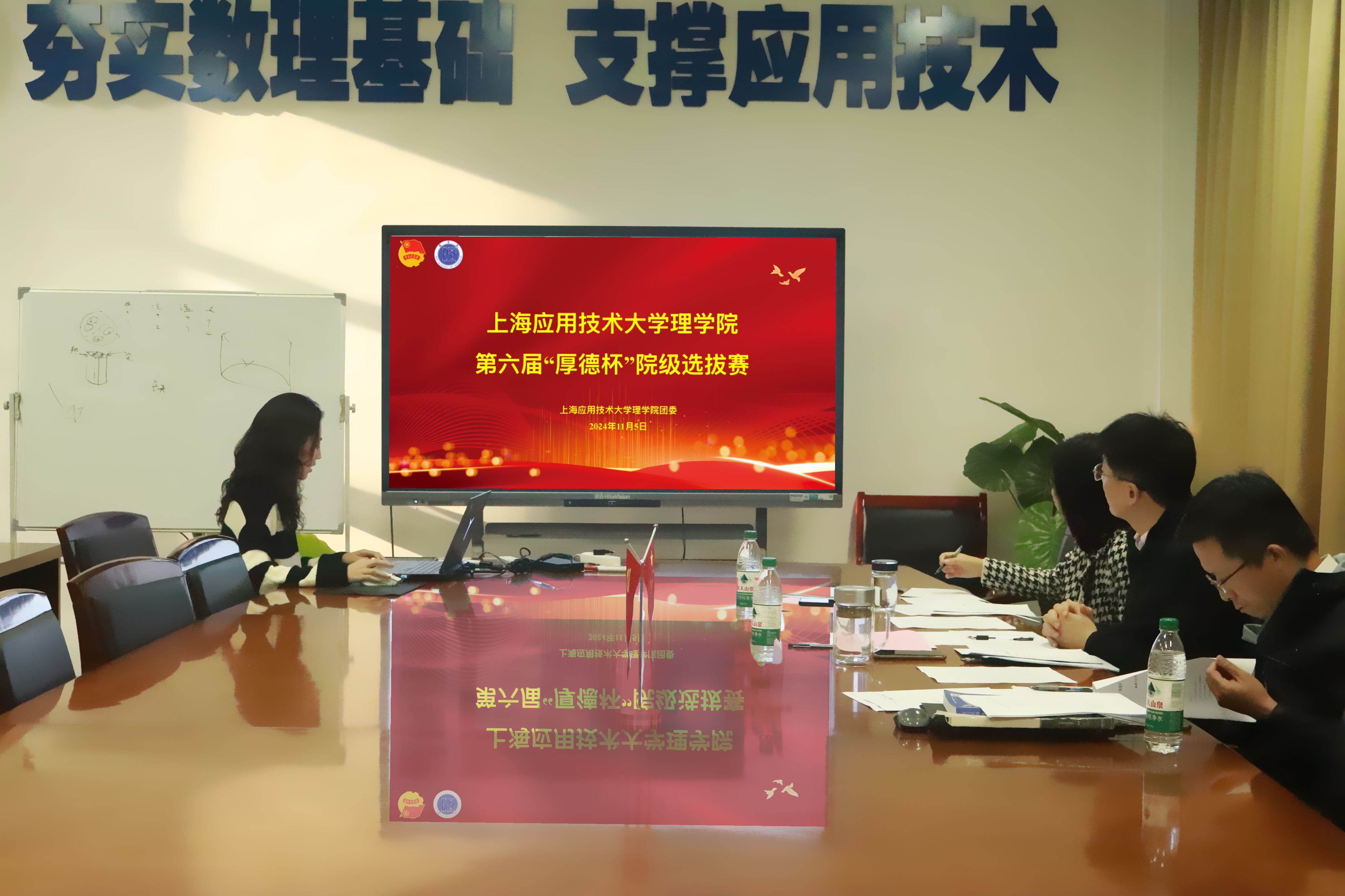 2024115日,上海应用技术大学第六届“厚德杯”理学院院内选拔赛顺利举行。理学院院长李以贵、副院长徐小明、专任教师赵宏伟、陶亦舟、杨晶、郭春凤等作为评委参加本次选拔。