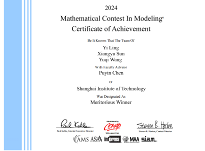 此次比赛于202422日至6日举办,共有来自中国、美国、澳大利亚、加拿大、英国和其他国家及地区高校的28912支队伍参加。竞赛题目内容涉及经济、环境、资源、生态、大数据、安全等多个领域,要求三人(本科生)为一组,在4天时间内,就指定的问题完成从建立模型、求解、验证到论文撰写的全部工作,体现了参赛选手研究问题、解决问题的能力及团队合作精神。