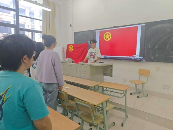 活动在嘹亮的团歌声中拉开帷幕。团支书刘宗林首先阐述了活动宗旨,强调新时代青年应赓续五四精神血脉,坚定理想信念,勇担时代使命。随后,通过专题学习环节,支部成员深入探讨五四运动的历史意义与精神内核。刘宗林结合史料,从“爱国、进步、民主、科学”四个维度解析五四精神的时代价值,并联系实际案例,引导团员思考如何在学业创新、志愿服务中践行青春誓言。