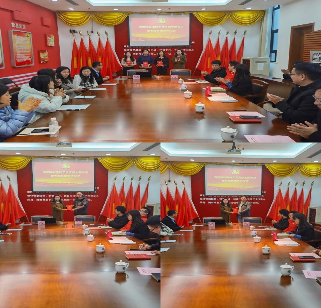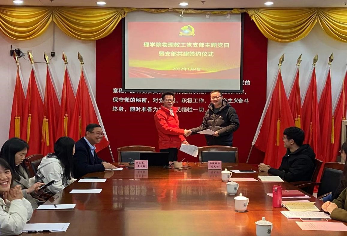 2022年1月4日,2022年的第一个工作日,全国样板党支部——理学院物理教工支部在学校图书馆B107会议室组织开展了“传承红色基因,奋进伟大征程”主题党日暨支部共建签约仪式。校党委副书记、副校长王瑛,学院党政班子、党委委员、物理教工党支部全体党员、学生第一党支部书记及师生代表参加了活动,活动由理学院党委书记陈雷主持。