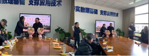 会议伊始青年教师为退休老师们献上鲜花,以此表达对前辈们的敬意!欢送会上,喜气洋洋、情意浓浓,院长李以贵送上了理学院的礼物,感谢他们辛苦的付出!