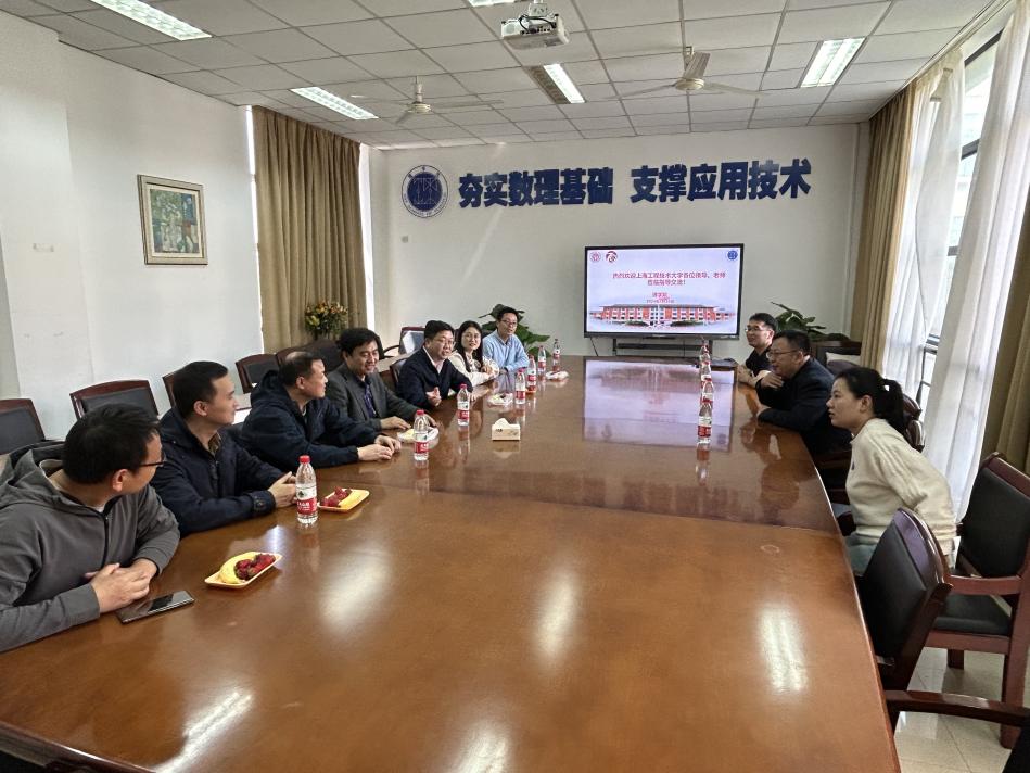 424日,上海工程技术大学数理与统计学院副院长吴建宝及大学物理系主任、光电工程学科负责人、实验中心负责人等一行莅临理学院进行调研。理学院院长李以贵教授及教师代表刘聚坤和胡蓉蓉老师热情接待了来访人员。