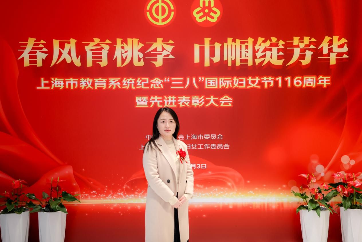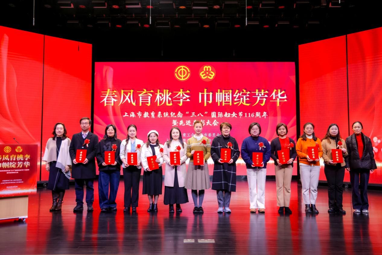 3月5日,上海市教育系统纪念“三八”国际妇女节116周年暨先进表彰大会,在上海教育会堂三楼观摩剧场隆重举行,我校理学院大学物理教研室荣获“上海市三八红旗集体”称号,物理教工党支部书记金妍受邀参会,代表学校接受表彰。