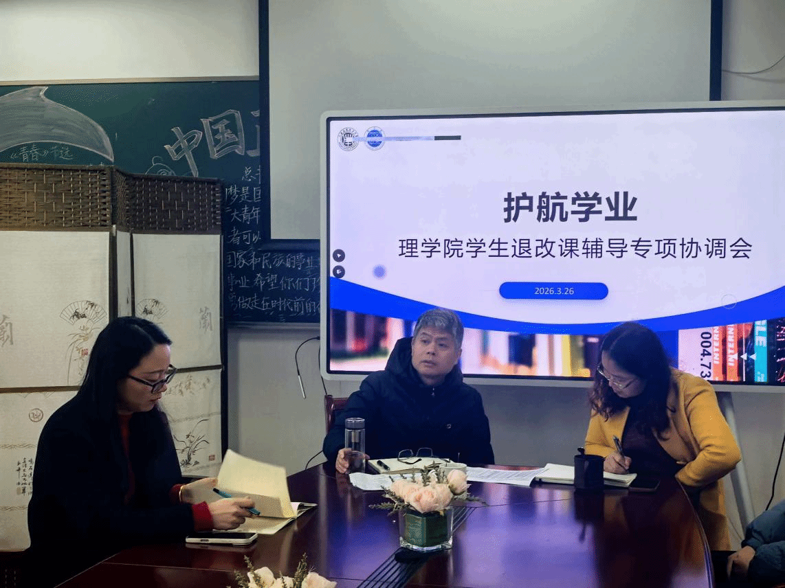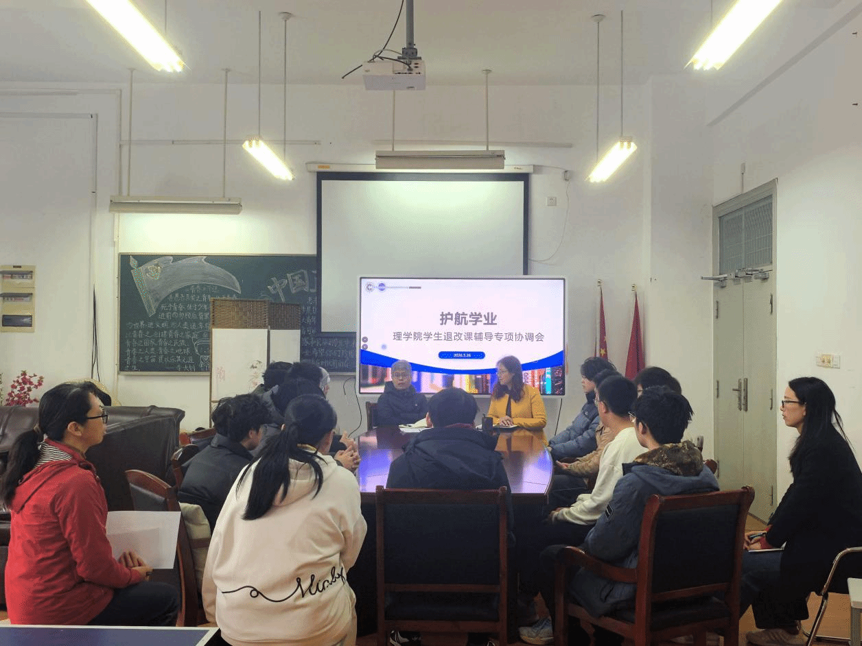 为落实“以生为本”的育人理念,切实帮助学业困难学生解决实际问题,3月26日上午,理学院在第四学科楼231会议室召开学业预警学生退改课辅导协调会。理学院党委书记许建强、院长陈丽琼、党委副书记、副院长宣蒙蒙、教务员庞莉莉、辅导员付玉涵及全体学业预警的学生参加会议。