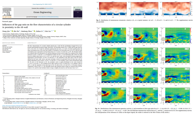 研究成果不仅深化了对近复杂壁面钝体绕流机理的理论认识,更为海底管线铺设、管道结构优化设计等工程实践提供了重要的理论支撑。这一突破性进展标志着我校湍流科研团队在海洋工程领域的研究水平迈上新台阶,对推动重大工程关键技术的创新与发展具有重要的科学意义。该论文由邱翔教授担任第一作者,刘宇陆教授、周建康博士担任通讯作者,李家骅高级实验师和硕士研究生谢斌共同参与完成。